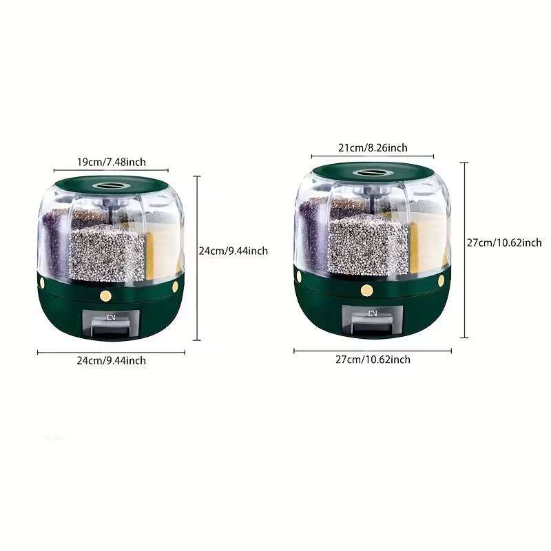 Breng rust en overzicht in je keuken met DraaiDose™. Deze slimme, roterende voorraadcontainer maakt het bewaren van rijst, granen, bloem of dierenvoer eenvoudig én stijlvol. Dankzij de handige draaifunctie kies je in één beweging het juiste vak, zonder rommel of losse zakken in je keukenkast.