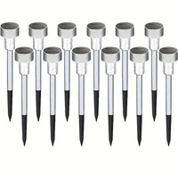 Verlicht je tuin, pad of terras sfeervol met deze solar LED buitenlampen van roestvrij staal. De set bevat 8, 10 of 12 lampen, elk 32 cm hoog, ideaal voor het accentueren van tuinpaden, opritten, borders en feestdecoratie. Dankzij hun duurzame RVS ontwerp en IP44-bescherming zijn deze tuinprikkers bestand tegen regen en weersinvloeden, perfect voor buitengebruik.