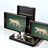 LeopardLuxe™ Glazen Dienblad | Artistieke Luipaardprint voor Parfum & Sieraden